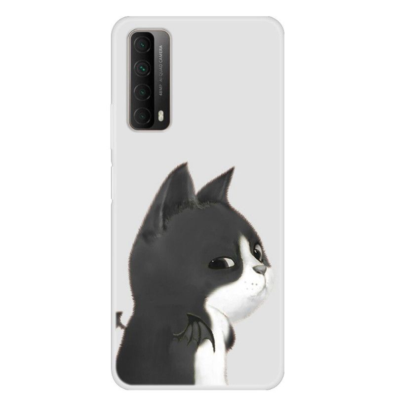 Une coque pour Huawei P Smart 2021 au look étonnant d'un chat gris avec de peties ailles de diable.