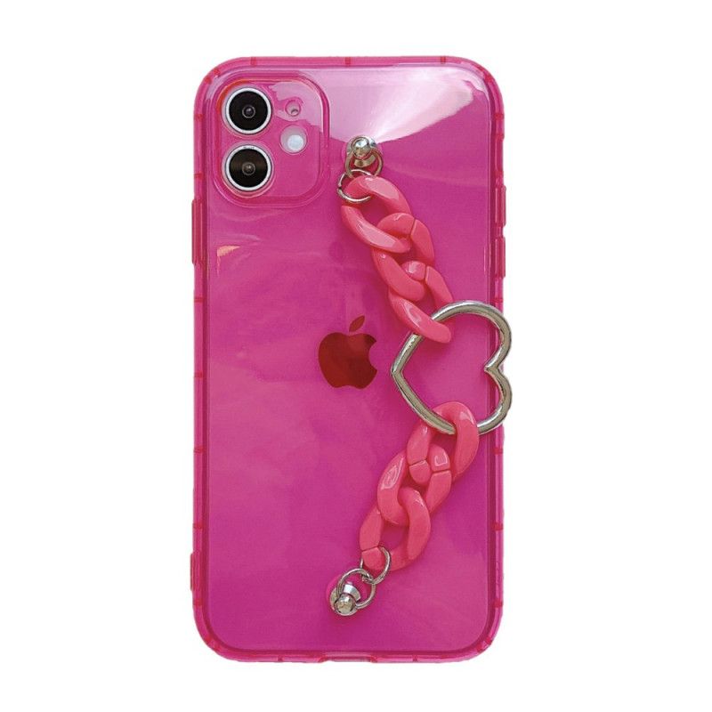 Protégez votre iPhone 11 avec cette coque fluorescente munie d'une chaine qui sert de bracelet avec un magnifique coeur.