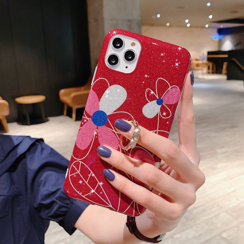 La coque Pailletes Florales avec Anneau-Supprt sécurise de façon fine et esthétique le iPhone 11 Pro.