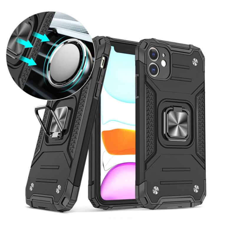 Telle une armure, cette coque sécurise parfaitement le dos et les rebords de votre iPhone 11 et est munie d'un anneau-support pour le mains libres.
