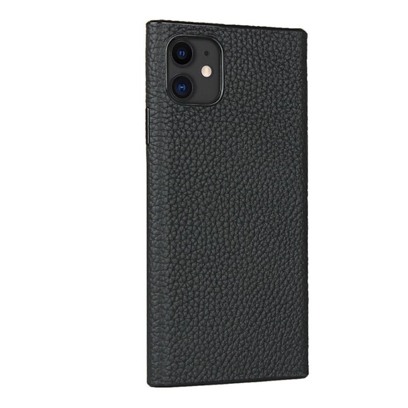 Coque iPhone 11 Véritable Cuir Litchi Avec Lanière