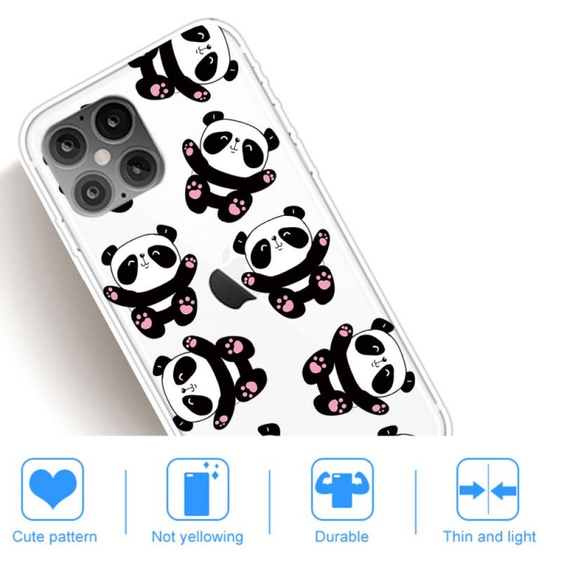 La coque Top Pandas Fun, en silicone flexible transparent, sécurise le iPhone 12 Pro Max tout en préservant son design original.