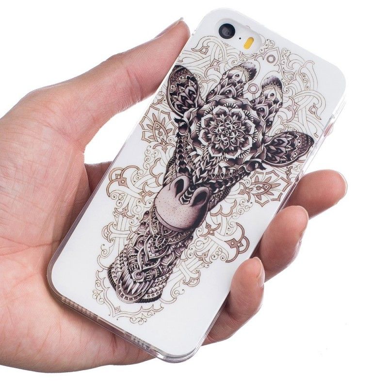 Une coque élégante pour iPhone SE/5/5S représentant une girafe tribale colorée en mosaïque.