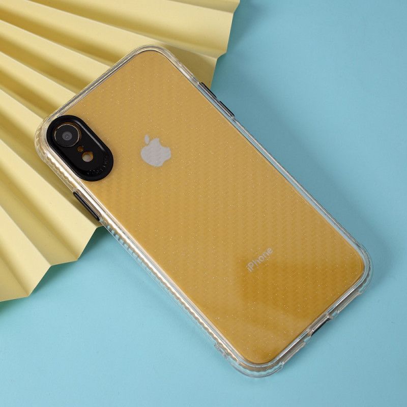 Coque iPhone Xr Transparente Texture Fibre Carbone