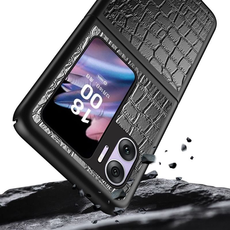 Cette coque avec texture peau de crocodile protège votre Oppo Find N2 Flip pour faire partie intégrante du téléphone.