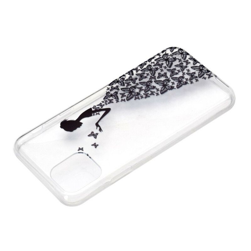 Une coque transparente, décorée d'une femme à la robe papillons, qui se fond avec les courbes fines de votre iPhone 13.