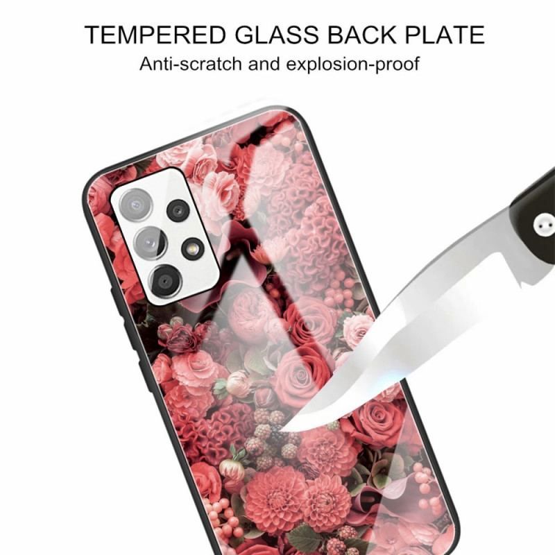 Le Samsung Galaxy A13 est très bien protégé avec cette coque Fleurs Roses en verre trempé (dos) et silicone (rebords).