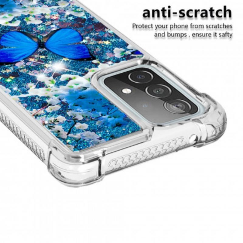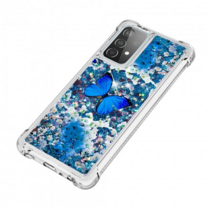 Coque Samsung Galaxy A52 4G / A52 5G / A52s 5G Papillons Bleus Paillettes
