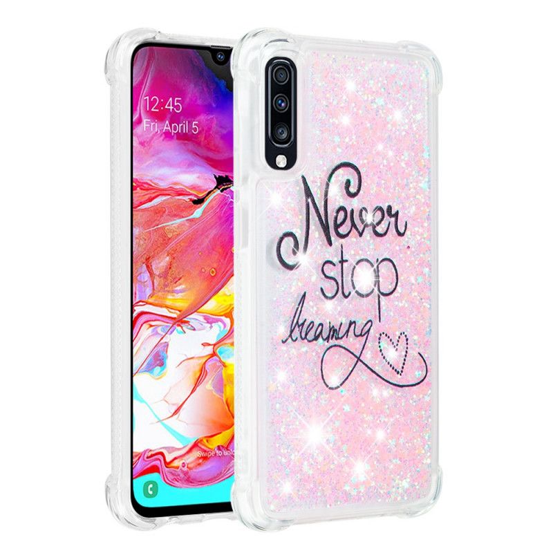 Une coque paillettée et les mots Never Stop Dreaming pour votre Samsung Galaxy A70 !