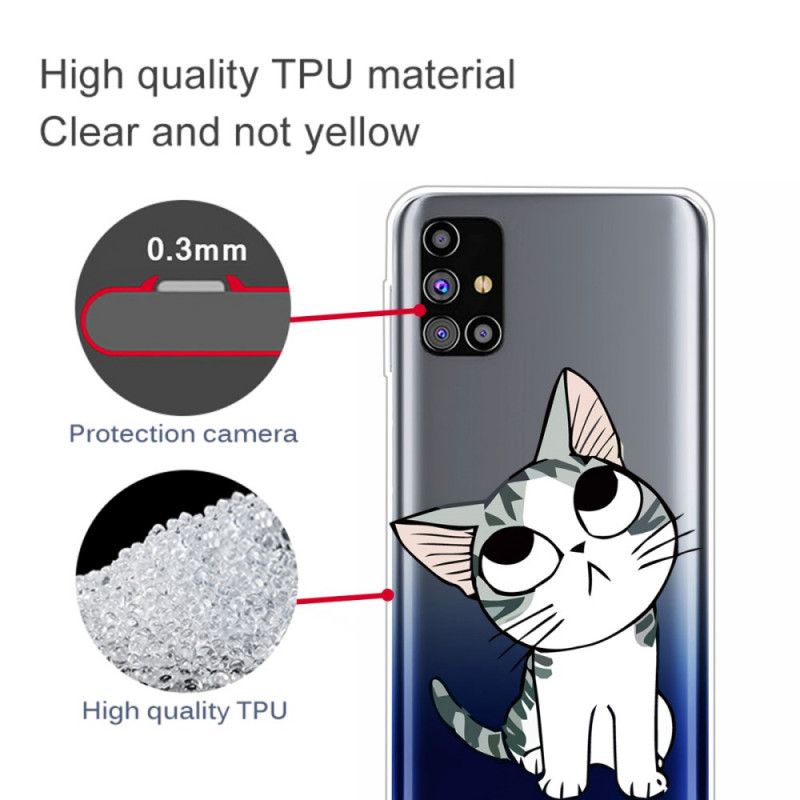 Protégez de façon efficace et fun votre Samsung Galaxy M51 avec cette coque en silicone flexible transparent Charmant Chat.