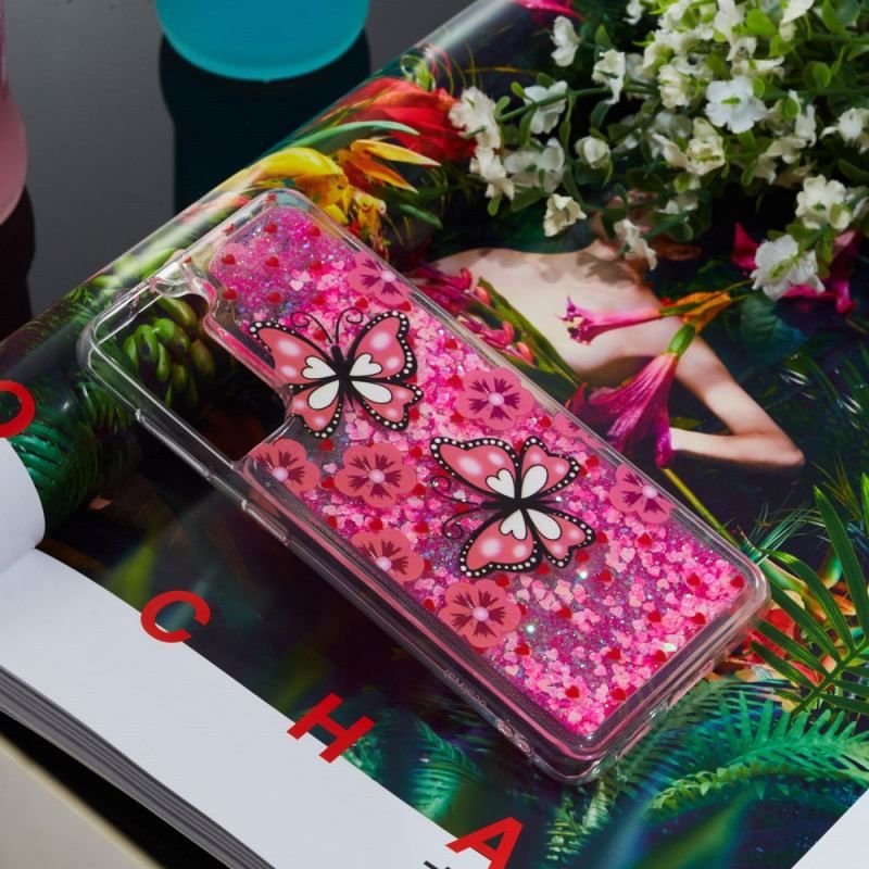 Coque Samsung Galaxy S22 5G Paillettes Papillons
