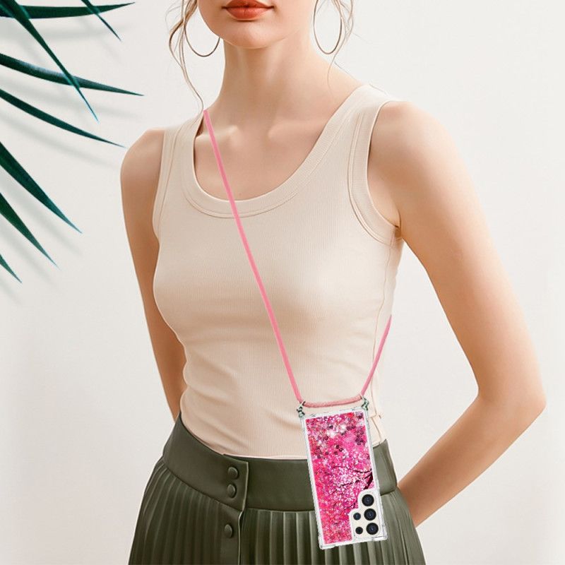 Découvrez notre coque Fleurs de Cerisier pour Samsung Galaxy S24 Ultra 5G avec des paillettes et un cordon.