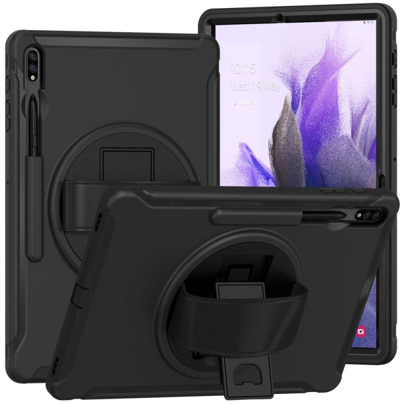 Un étui robuste pour votre Samsung Galaxy Tab S9 FE Plus / S9 Plus / S8 Plus / S7 Plus / S7 FE, doté d'un support rotatif à 360° et d'une sangle pratique pour un transport facile.