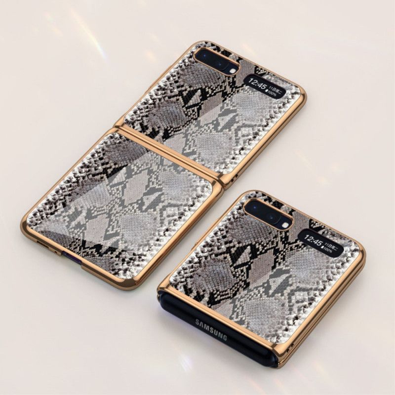 Protégez de façon maximale votre Samsung Galaxy Z Flip avec cette coque pliable en verre trempé de style peau de serpent de chez GKK.
