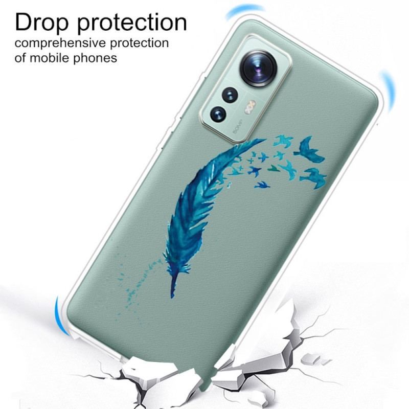La coque Belle Plume Bleue, en silicone flexible transparent, sécurise le Xiaomi 12 / 12X de façon efficace contre les chocs, les rayures et la poussière.
