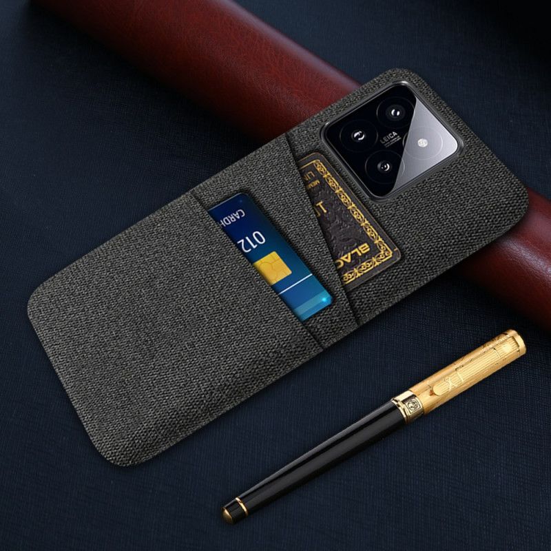 Coque Xiaomi 14 Tissu Double Porte-Cartes