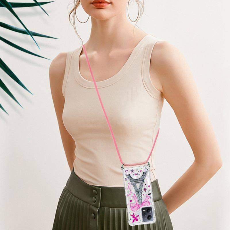 Choisissez cette coque à paillettes Tour Eiffel, qui vient avec un cordon pratique, pour votre Xiaomi Redmi Note 12 5G/Poco X5 5G.