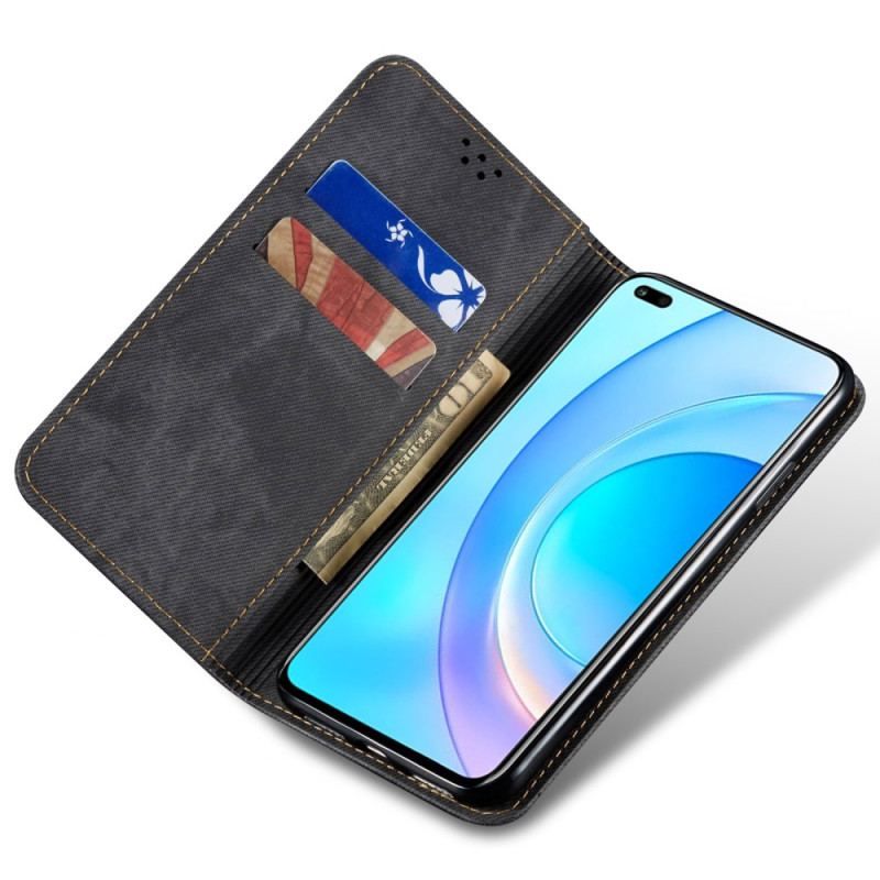 Cette flip cover en tissu assure la protection du Honor 90 tout en servant de portefeuille et de support mains libres.