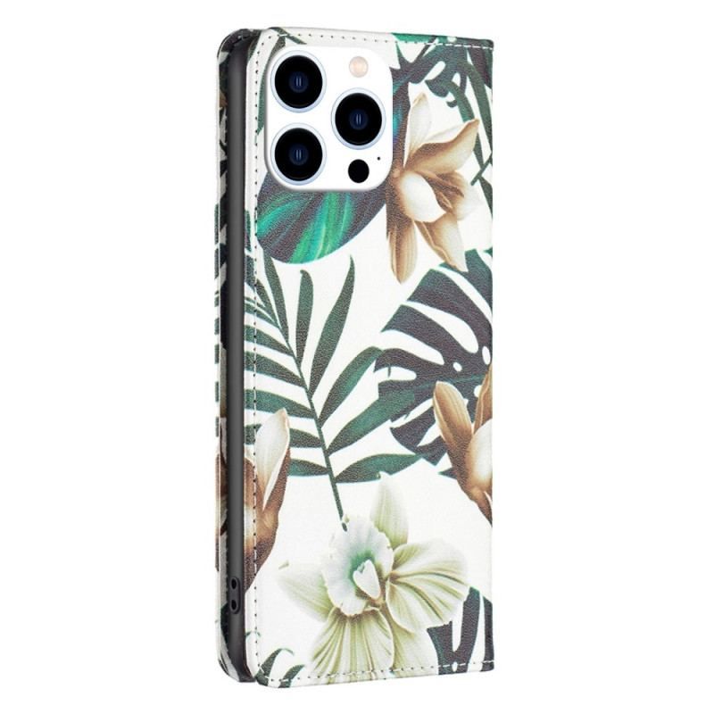 Protégez votre iPhone 14 Pro avec cette flip cover décorée de feuilles colorées.