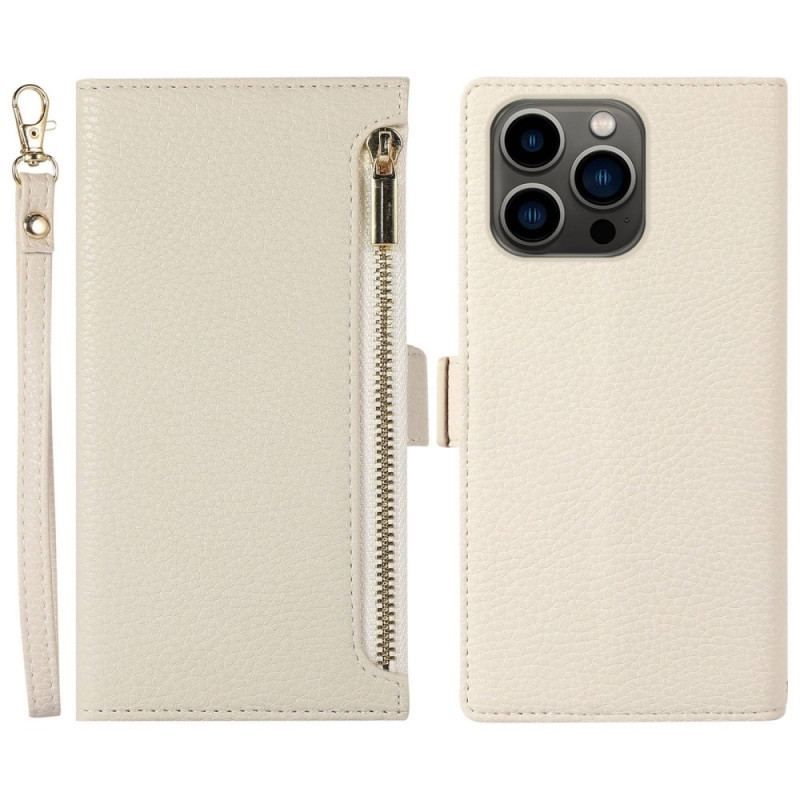 Protégez votre iPhone 14 Pro Max avec cette flip cover en simili cuir litchi munie d'une pochette frontale et d'une lanière.