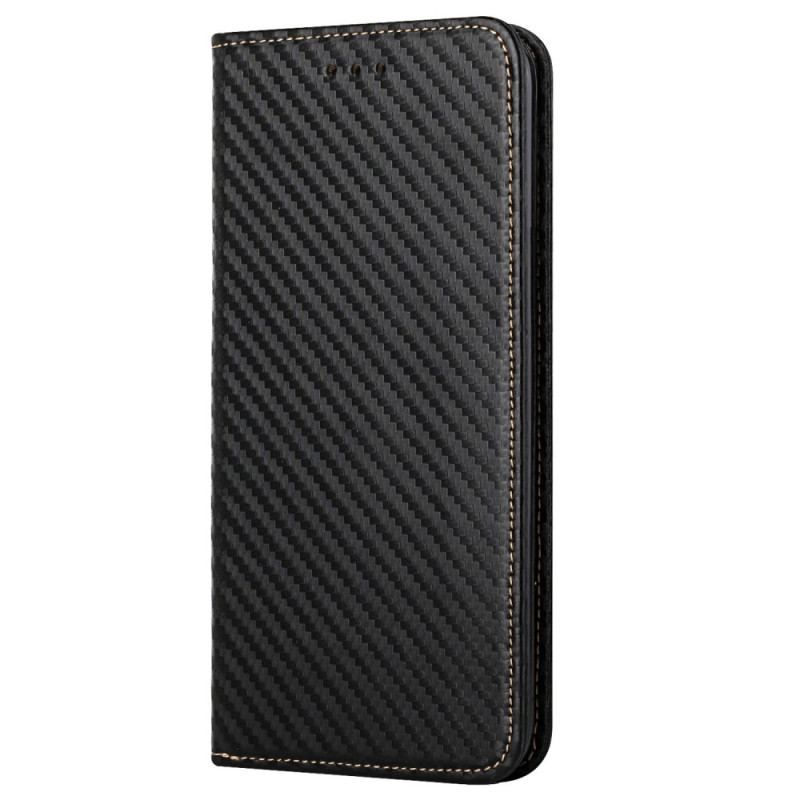 Flip Cover iPhone 14 Style Fibre Carbone à Lanière
