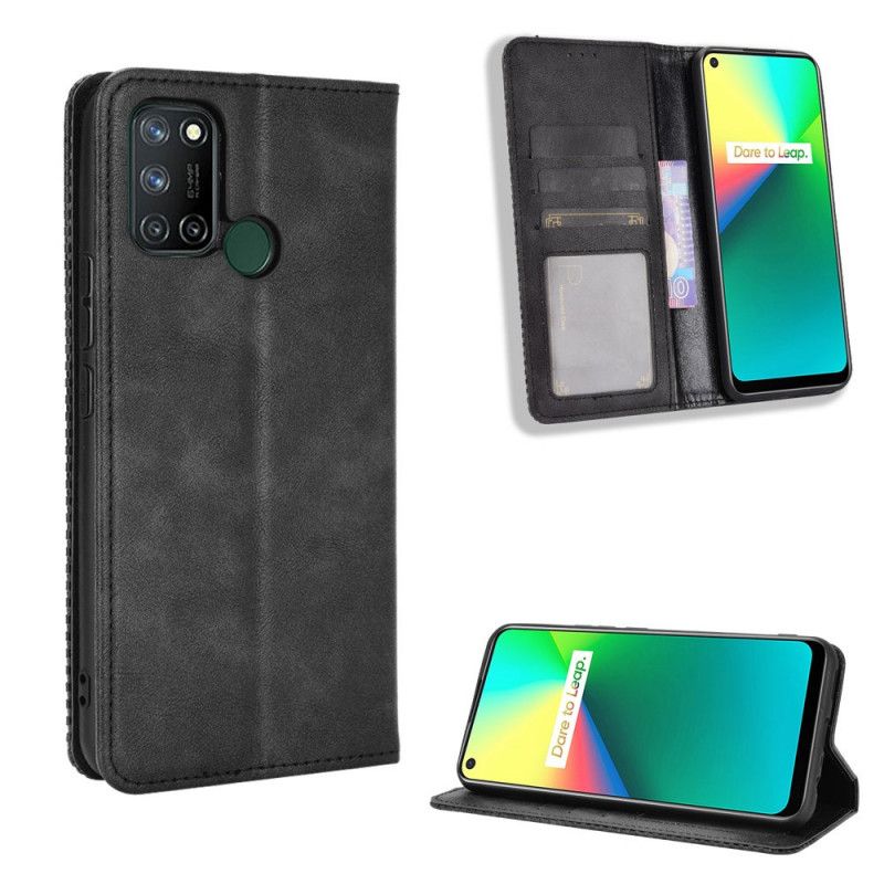 Flip Cover Realme 7i Effet Cuir Vintage Stylisé