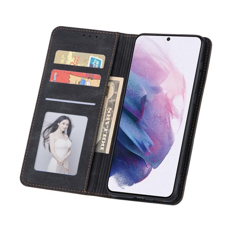Cette flip cover Ligne, de style cuir, protège l'ensemble du Samsung Galaxy S22 5G tout en servant de portefeuille et de support mains libres.