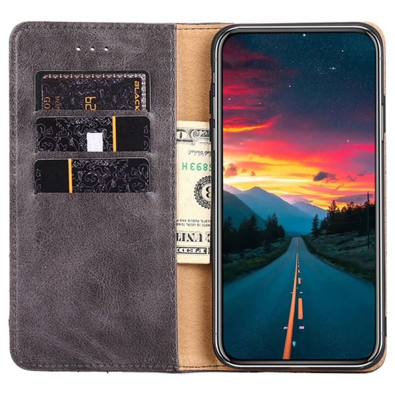 - Étui en simili cuir autour d'une coque en silicone / style flip cover