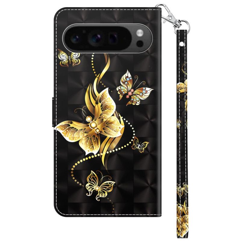 Housse Google Pixel 9 Pro XL Papillon Dorés en Vol à Lanière