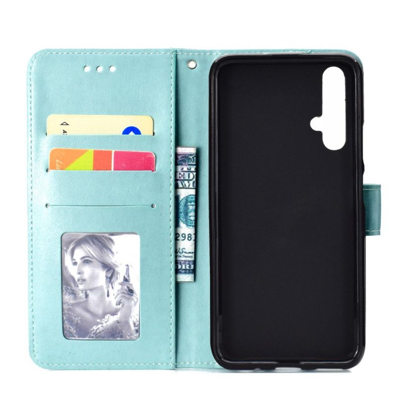 Une magnifique housse pour Honor 20 / Huawei Nova 5T au mandala design d'un Soleil qui fait aussi portefuille et support accompagné d'une laniére.