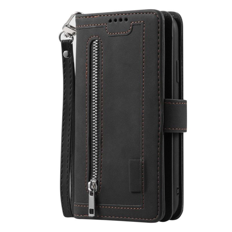 Cet étui élégant pour Honor 200 Lite est doté d'une poche à fermeture éclair et de neuf fentes pour cartes.