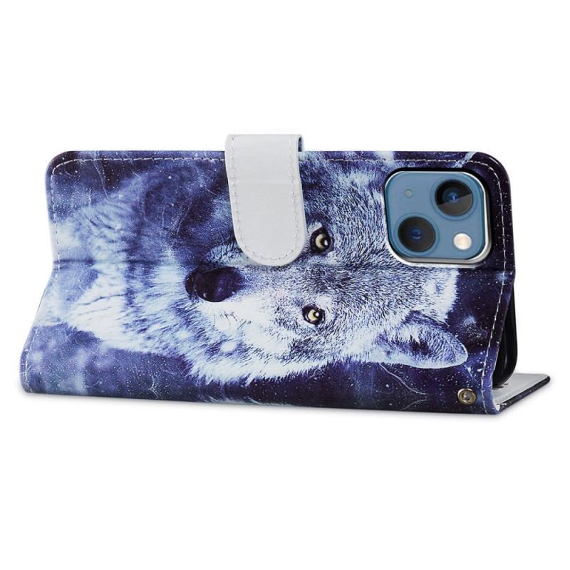 La housse Loup Blanc, qui vient avec une lanière, protège l'ensemble du iPhone 15 tout en faisant portefeuille et support très pratique.