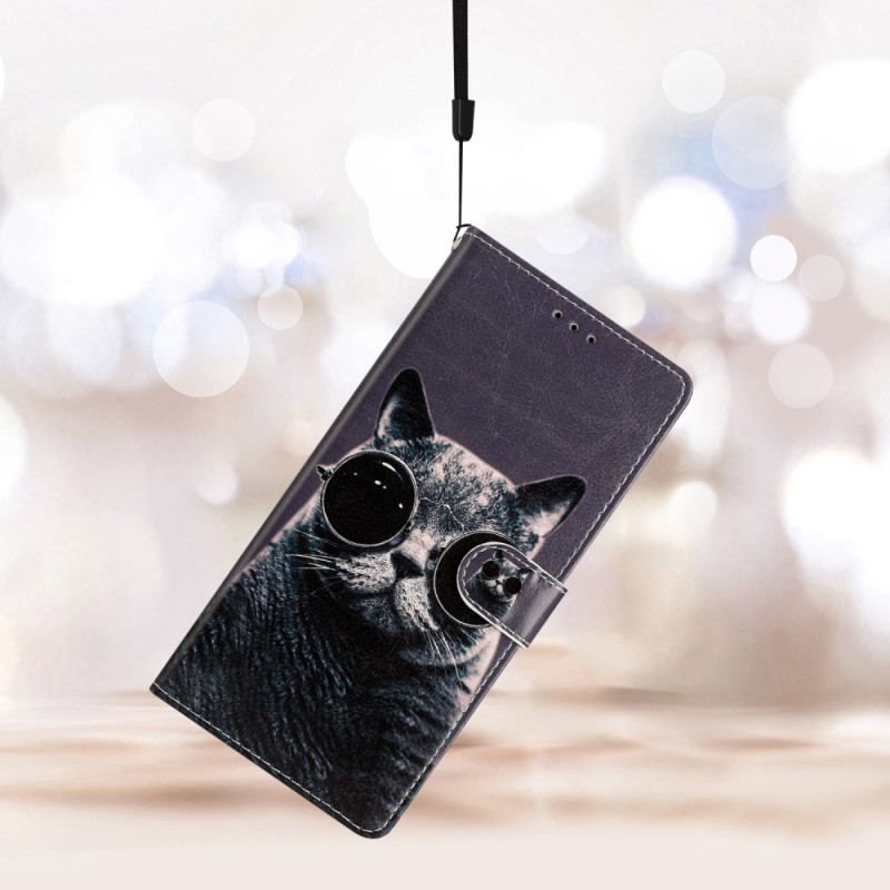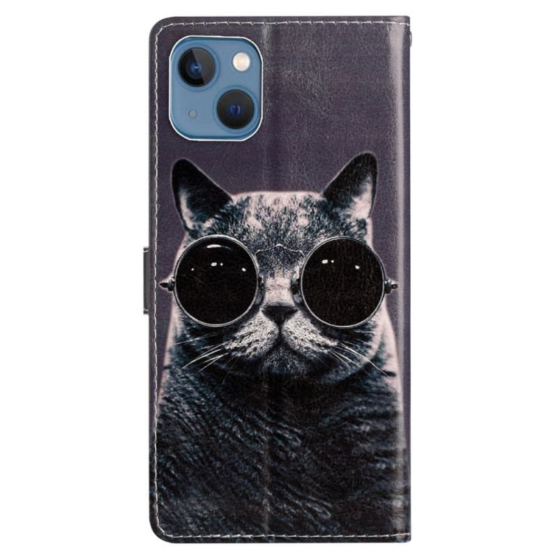Housse iPhone 15 Plus Chat à Lunettes à Lanière