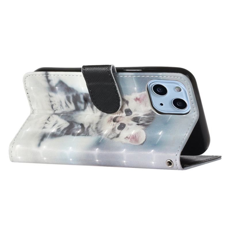 Housse iPhone 15 Plus Chaton 3D à Lanière
