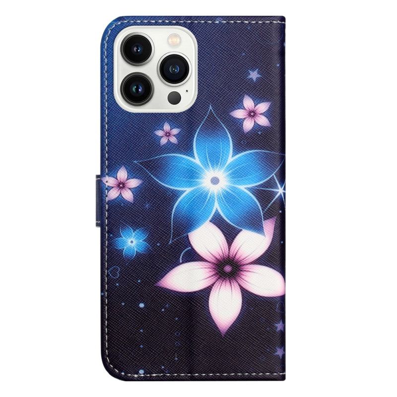Découvrez notre étui portefeuille pour iPhone 16 Pro Max avec une impression de motif fleur bleue.