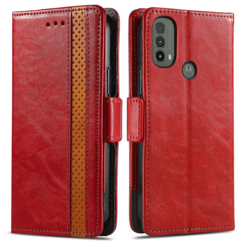 La housse CaseneO en simili cuir bicolore pour votre Moto E40 / E30 / E20 fournie protection, emplacements pour cartes et double fermoir.