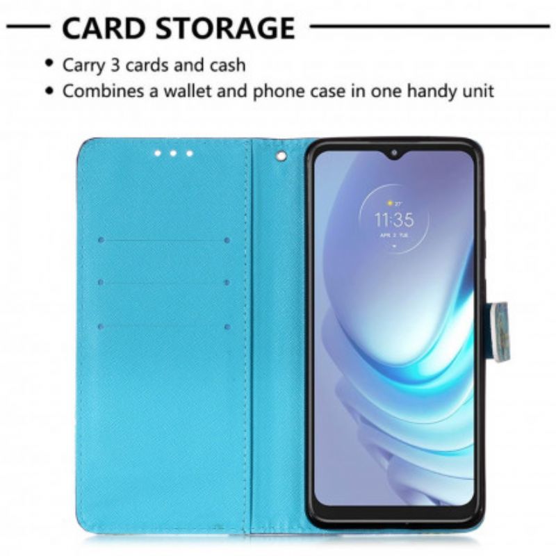 La housse Attrape Rêves Aquarelle protège de façon astral et artistique le Moto G50 tout en faisant portefeuille.