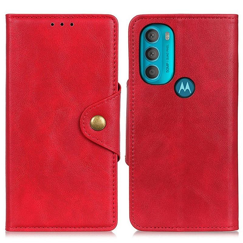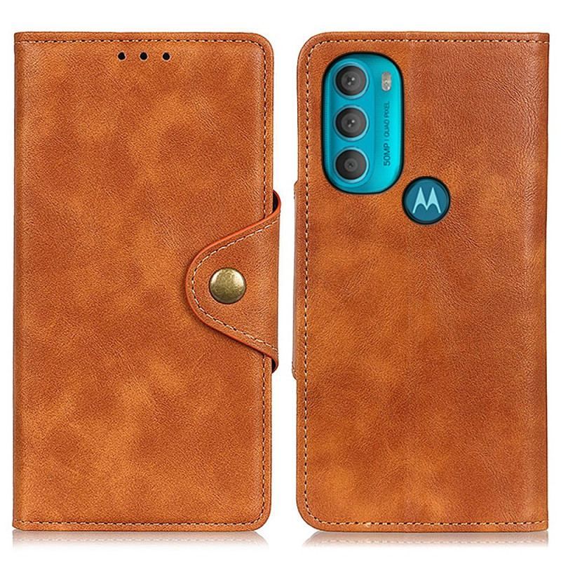 Housse Moto G71 5G Simili Cuir Vintage et Bouton