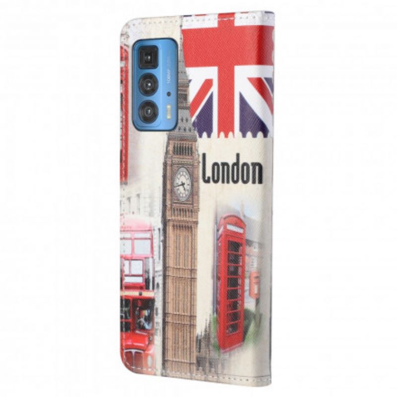 Une housse pétillante et colorée aux différents motifs londoniens pour Motorola Edge 20 Pro.