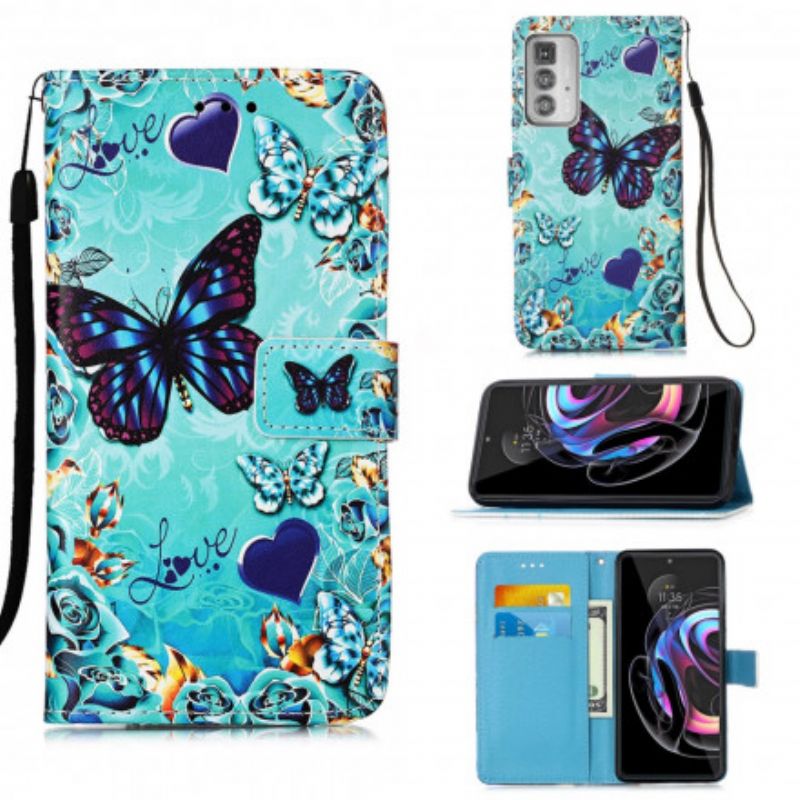 Housse Motorola Edge 20 Pro Love Butterflies À Lanière