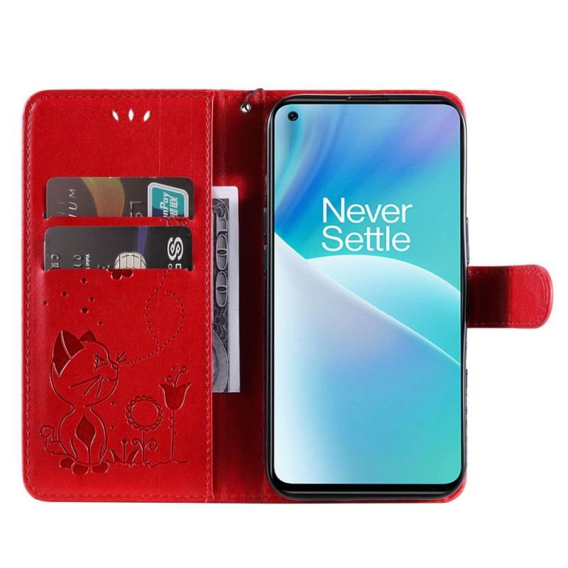 Housse OnePlus Nord 2T 5G Chat et Abeille avec Porte-Cartes à Lanière