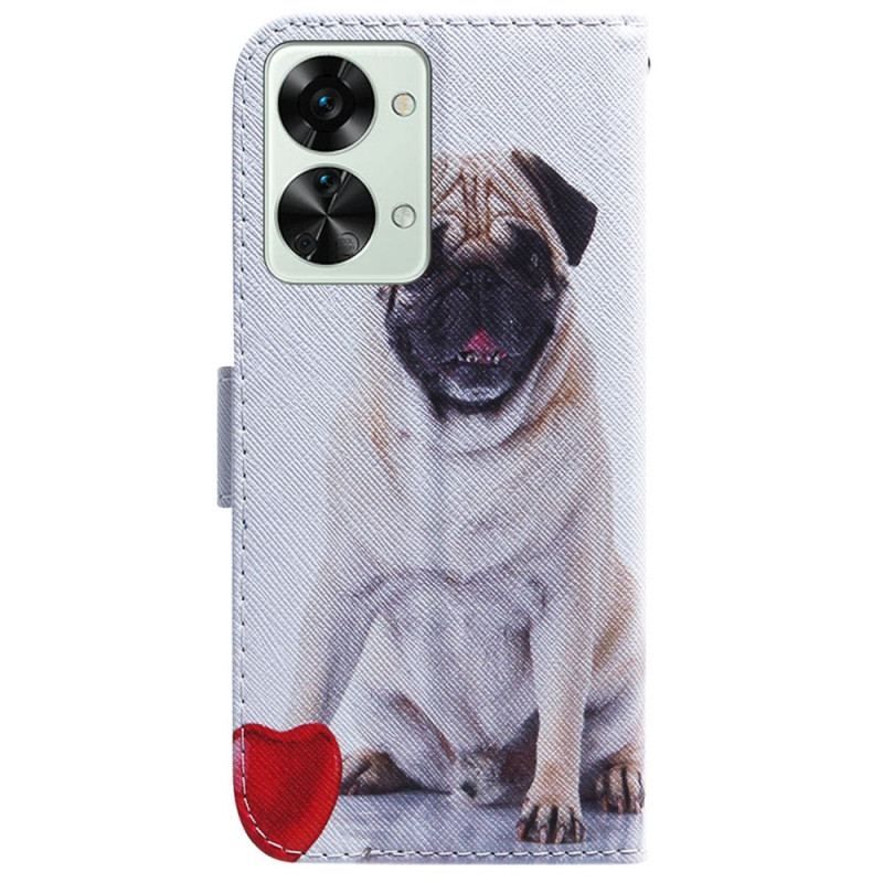 Voici une housse en simili cuir et silicone, ornée d'un adorable carlin, qui protège le OnePlus Nord 2T 5G adéquatement.