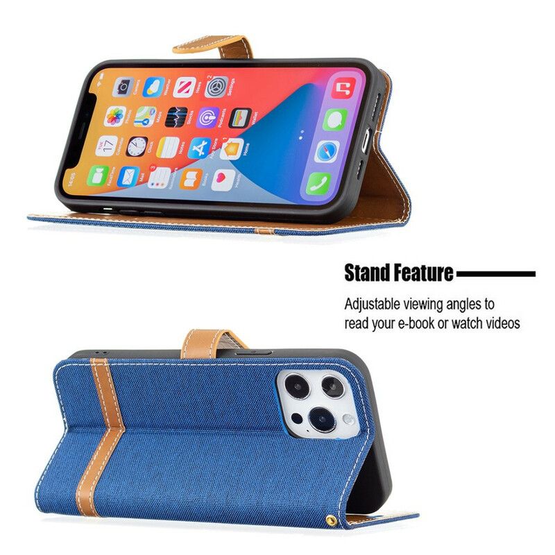 Housse Pour iPhone 13 Pro Tissu Et Effet Cuir À Lanière
