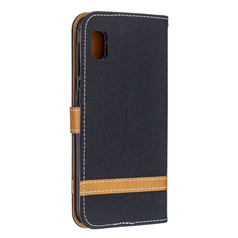 Cette housse est conçue en partie de tissu et de simili cuir pour votre Samsung Galaxy A10e !