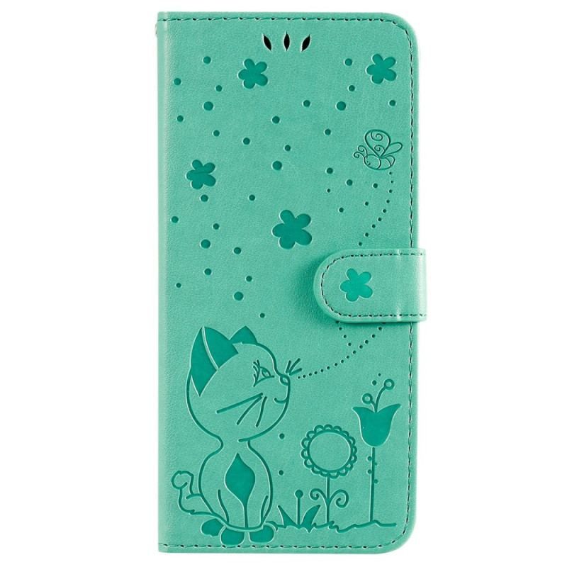 Votre Samsung Galaxy A14 5G / A14 est entièrement protégé avec cette housse en simili cuir avec un chat et des abeilles.