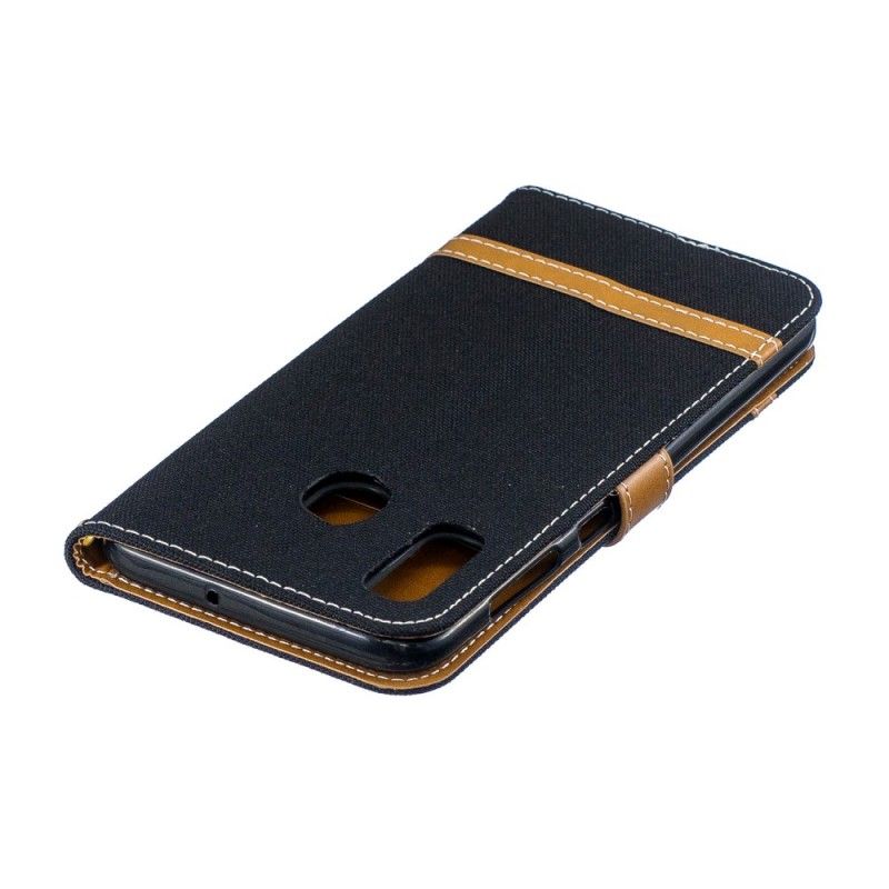 Cette housse est conçue en partie de tissu et de simili cuir pour votre Samsung Galaxy A30 !
