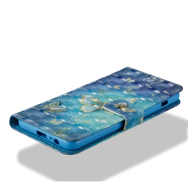 La housse Papillons Dorés 3D, avec rabat magnétique, assure la protection de votre Samsung Galaxy A8 2018.
