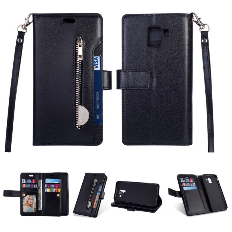 Une magnifique housse, en simili cuir, conçue pour le Samsung Galaxy J6, avec un porte-monnaie zippé utile.