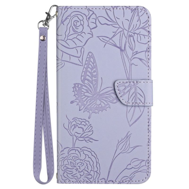 Housse Samsung Galaxy M33 5G Papillons Discrets et Lanière