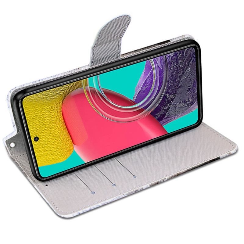 La housse Papillon sur fond bleu est idéale pour protéger le Samsung Galaxy M53 5G tout en servant de portefeuille.